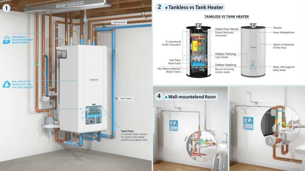 A tankless water heater works in a different way. It heats water only when you turn on the tap. That means you get hot water on demand without storing it in a tank.
