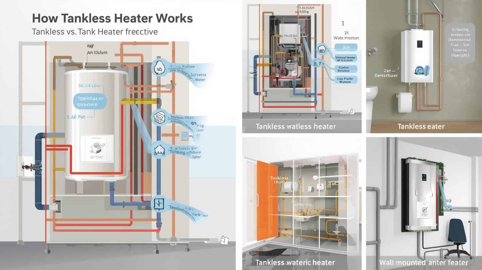 A Tankless Water Heater heats water only when you turn on a hot tap. Cold water flows into the unit, passes through a heat part, and a gas flame or electric coil heats the water right away. Because it does not store water in a tank, you get hot water on demand.