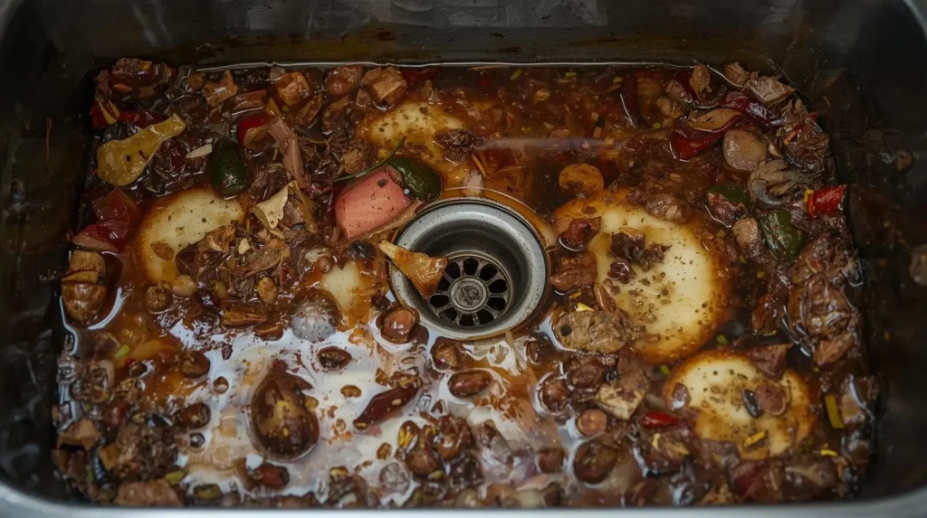 Most clogs come from grease, food bits, soap scum, or small tools stuck in the drain.